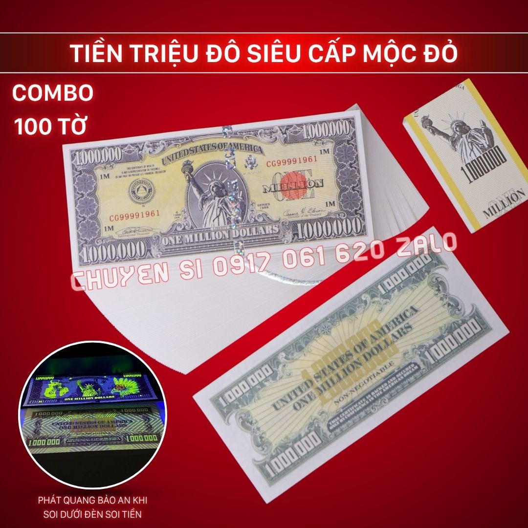 Combo 100 tờ Tiền 1 Triệu Đô USD Mỹ Mộc Đỏ là lựa chọn số 1. Đây là phiên bản tiền lưu niệm siêu cấp. Tờ tiền sở hữu thiết kế cổ điển, sang trọng với con dấu đỏ đặc trưng. Đây là món quà lì xì độc lạ, đẳng cấp và mang ý nghĩa tài lộc cực lớn.