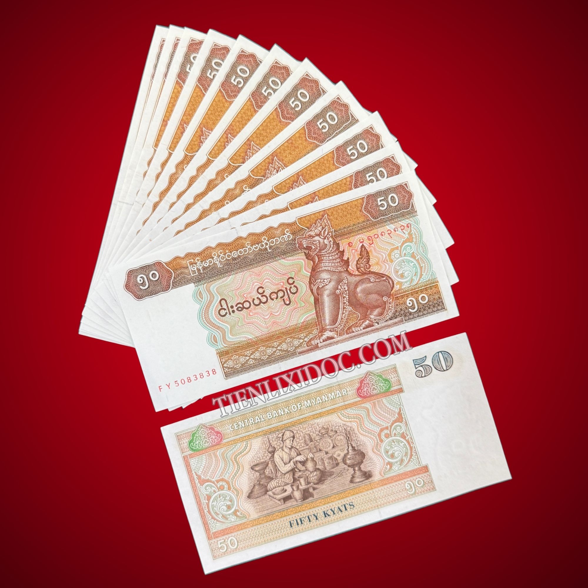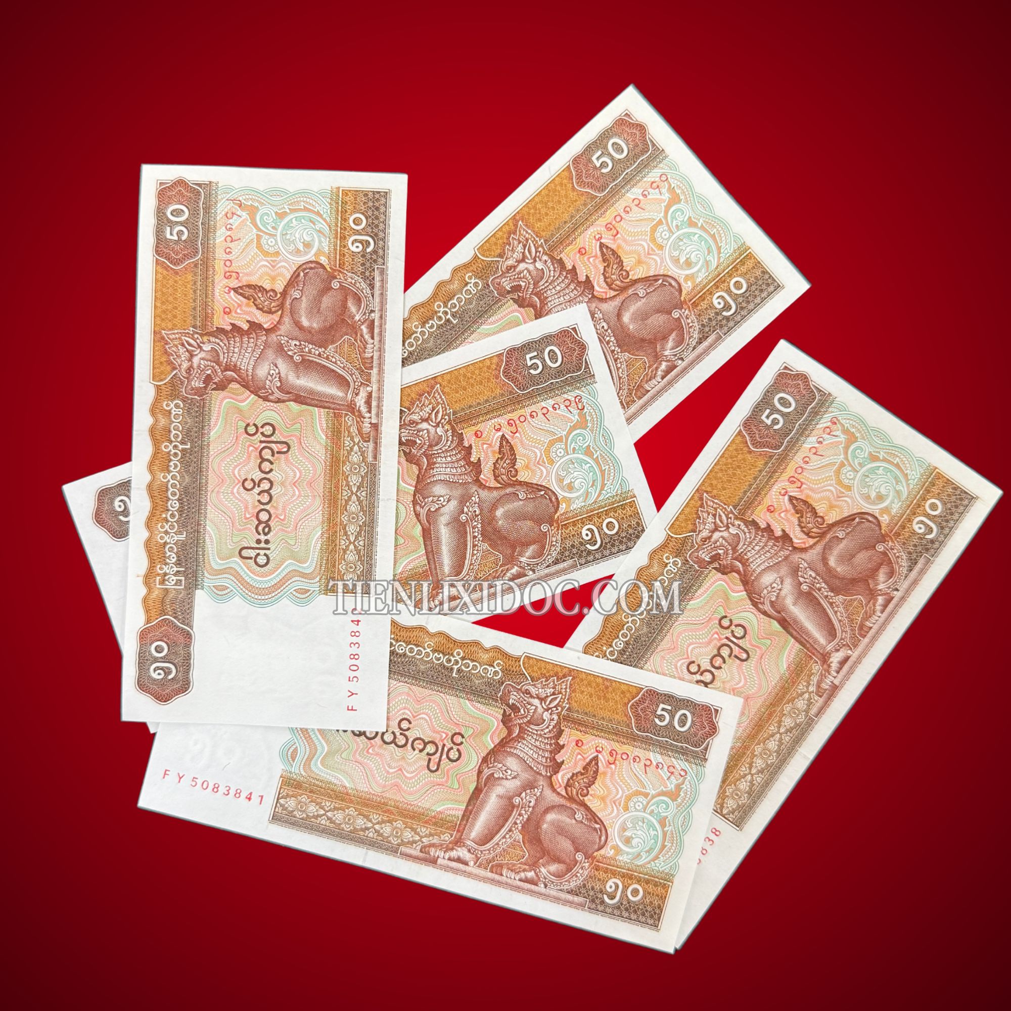 Combo 100 Tờ Tiền Con Lân Myanmar 50 Kyat (Năm 1994) – Giá Sỉ