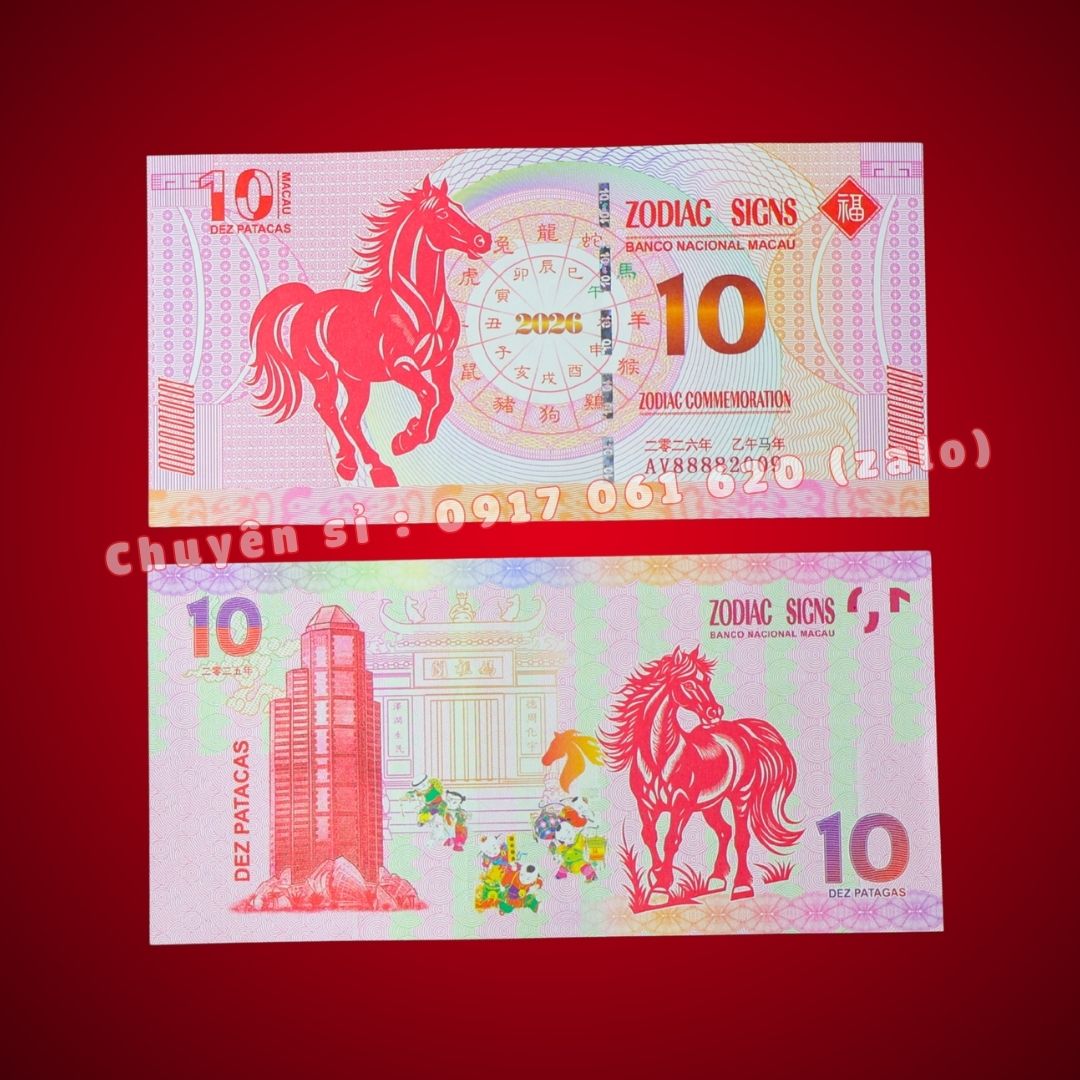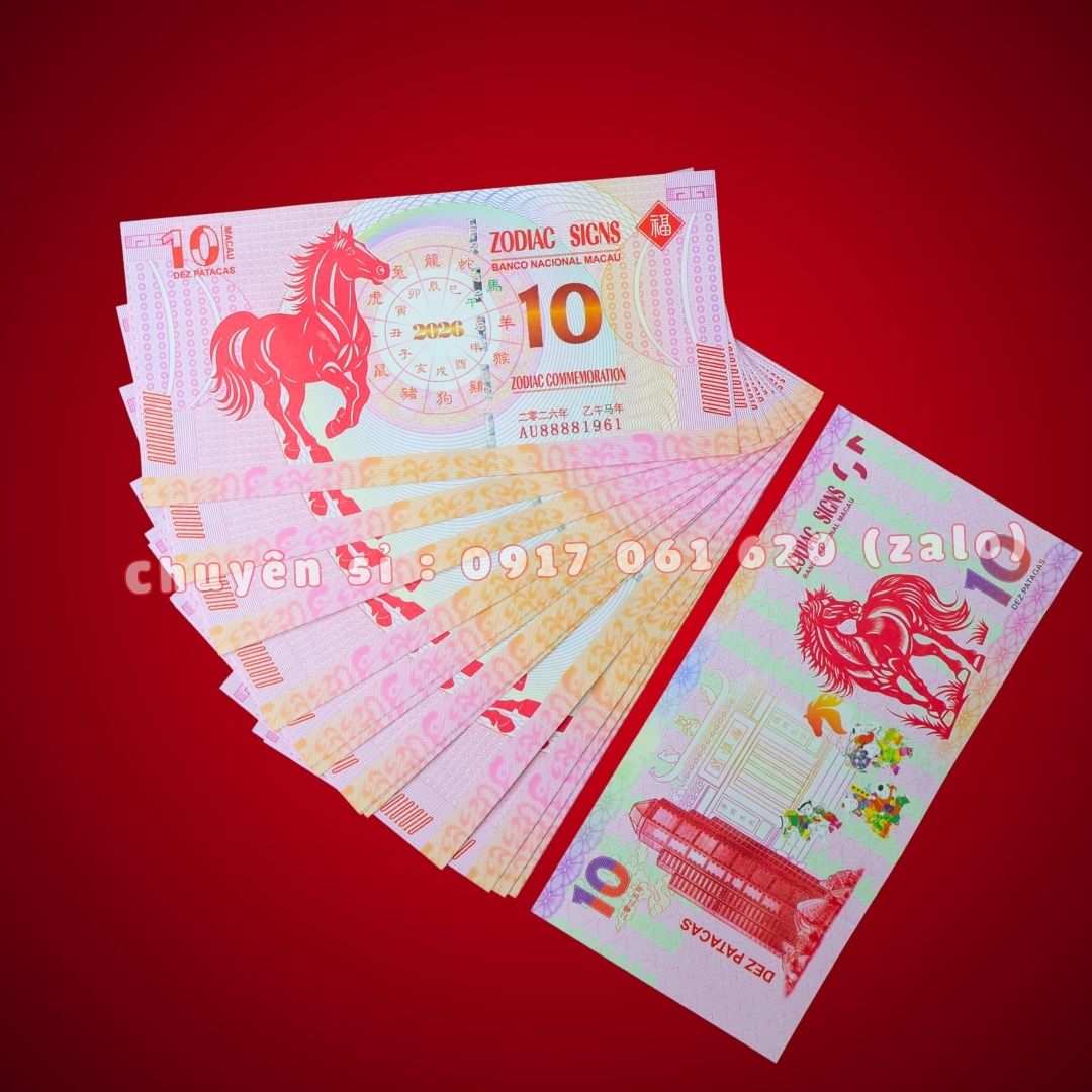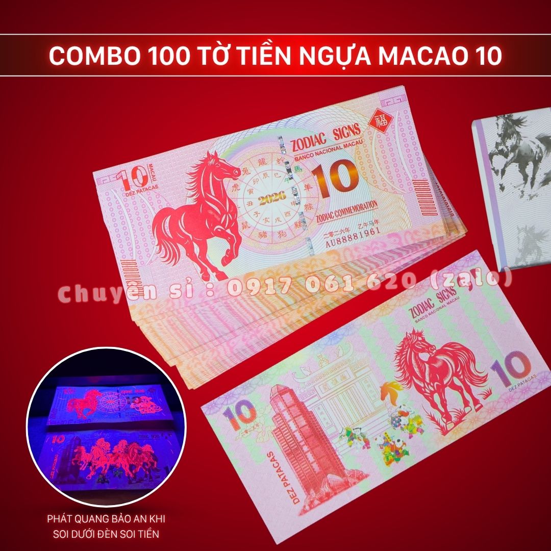 Combo 100 Tờ Tiền Ngựa Macao 10 Patacas Mã Đáo Thành Công (Đón Tết 2026)