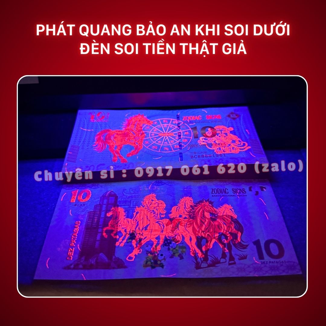 Điểm đắt giá nhất của tờ Tiền Ngựa Macao 10 Patacas chính là khả năng phát quang dưới đèn soi tiền (đèn UV).