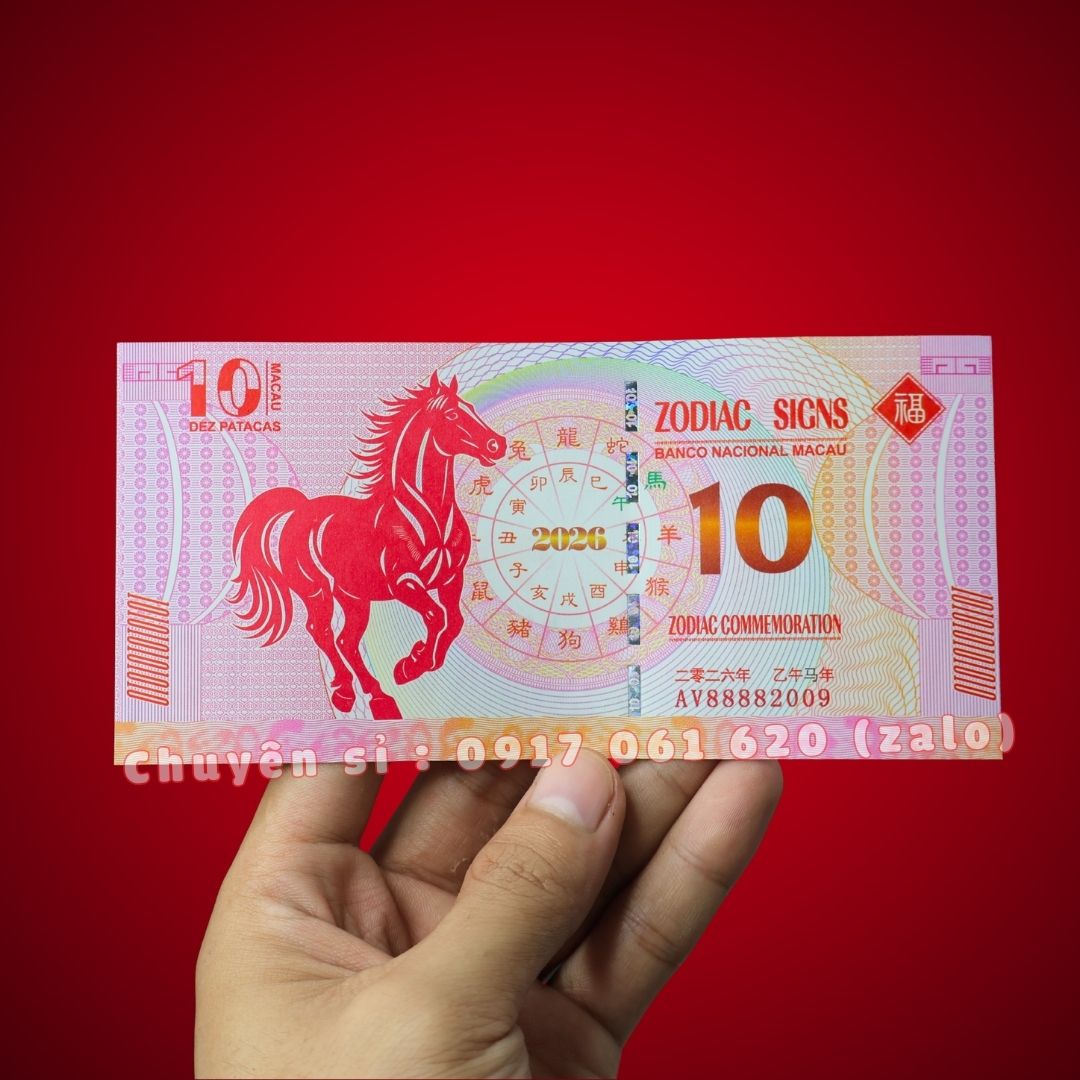 Bên cạnh chú ngựa là dòng chữ “2026” và vòng tròn 12 con giáp (Zodiac Signs). Đây là tờ tiền kỷ niệm đặc biệt. Nó hướng tới năm Bính Ngọ 2026 sắp tới.