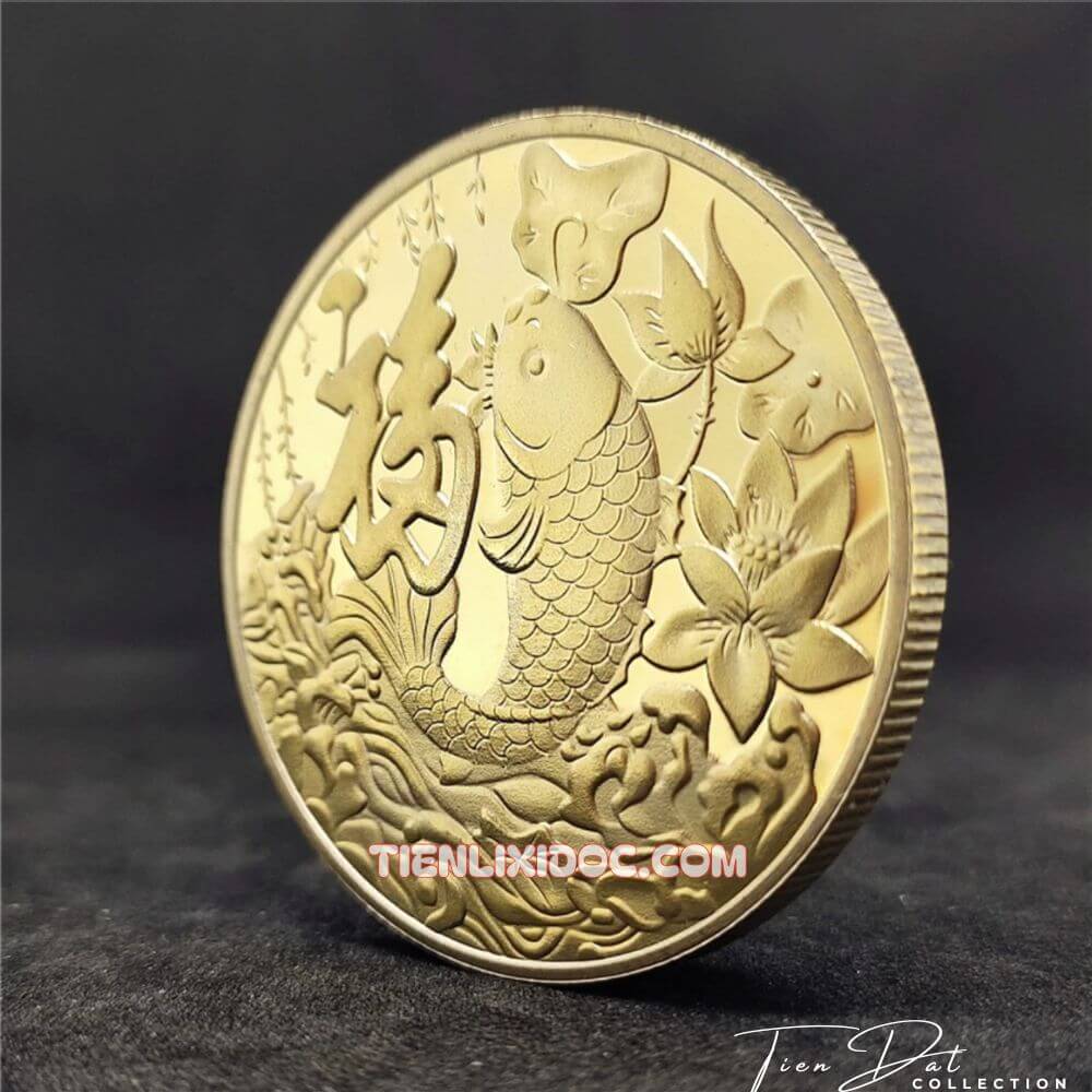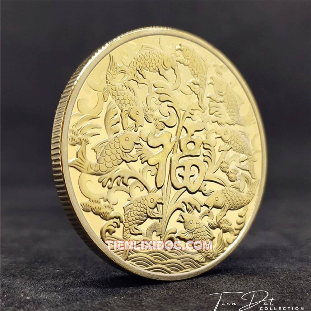 Trong văn hóa Á Đông, đồng xu cá chép hóa rồng mạ vàng không chỉ là vật phẩm trang trí mà còn mang ý nghĩa phong thủy sâu sắc. Với thiết kế tinh xảo gồm mặt trước là hình cá chép hóa rồng cùng chữ “Phúc”, mặt sau là 9 con cá chép bao quanh chữ “Phúc” tạo thành biểu tượng Cửu Phúc, đồng xu này được xem là bùa may mắn giúp chiêu tài lộc, thăng quan tiến chức