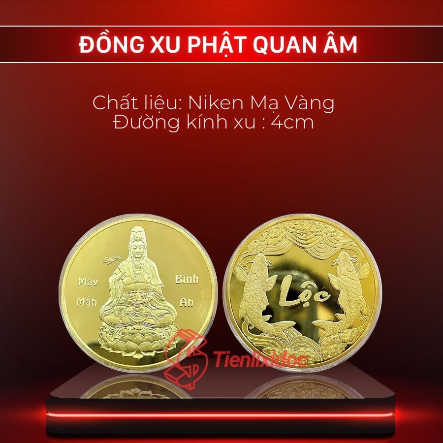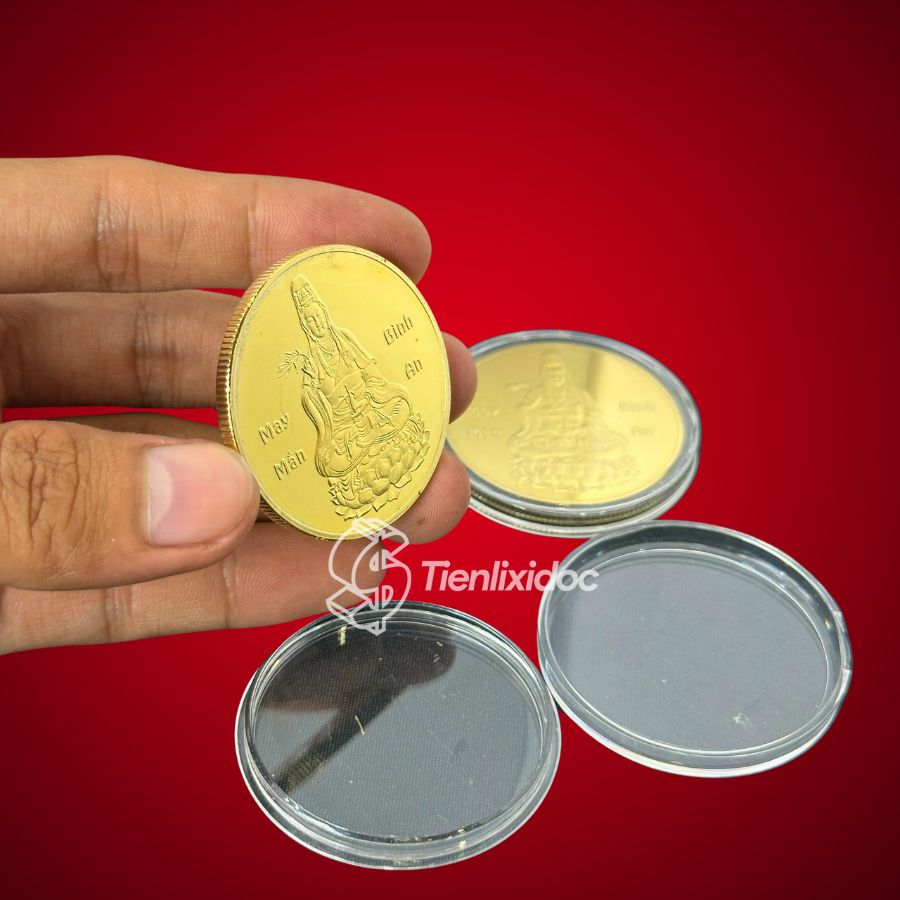 Vật phẩm mang trong mình năng lượng từ bi của Mẹ Hiền Quan Thế Âm. Đồng Xu Phật Quan Âm mạ vàng là một pháp bảo hộ thân nhiệm màu. Vật phẩm giúp xoa dịu mọi phiền não và ban phát phước lành. Nó mang lại bình an cho tâm hồn và phúc lộc cho gia đạo. Tết đang đến gần, đây là thời điểm thiêng liêng để trao gửi yêu thương. Đồng xu này là món quà Tết chứa đựng lòng thành kính. Nó thay cho lời chúc phúc viên mãn nhất cho một năm mới an yên.