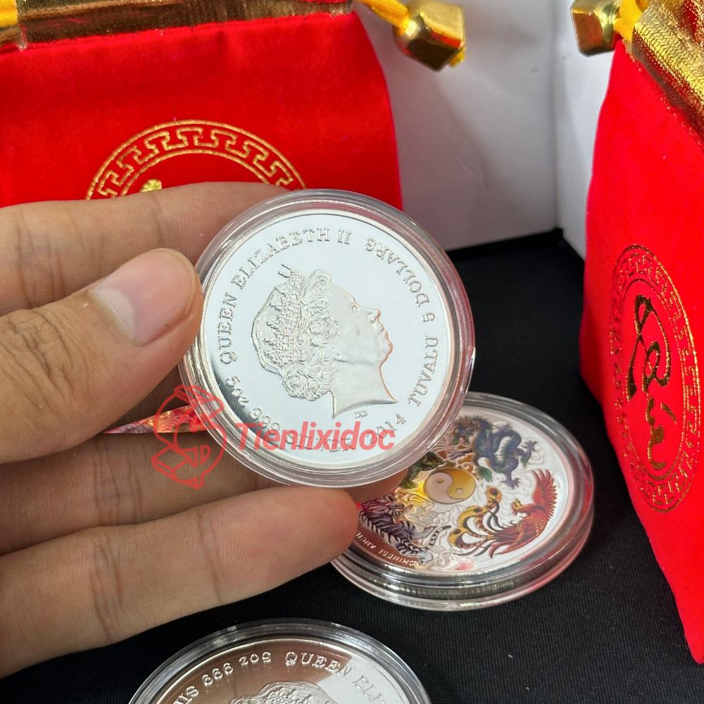 Đồng xu được phủ một lớp mạ bạc lấp lánh. Màu bạc mang vẻ đẹp sang trọng, hiện đại. Trong phong thủy, nó còn tượng trưng cho sự tinh khiết, thanh tẩy. Yếu tố này giúp khuếch đại năng lượng của Tứ Linh lên tối đa. Mỗi thần thú được chạm khắc sống động, toát lên thần thái riêng biệt.