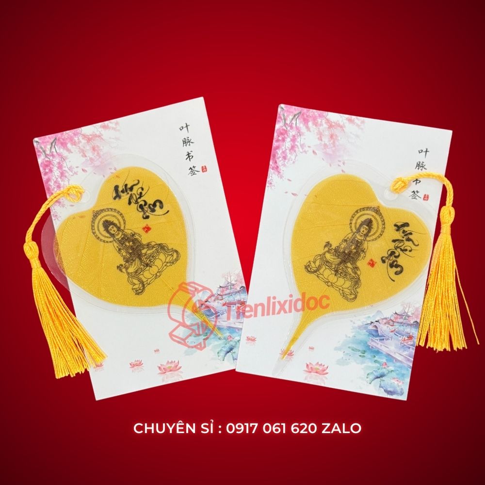 - Chất liệu: Xương lá bồ đề tự nhiên, dát vàng, ép lụa bảo vệ.