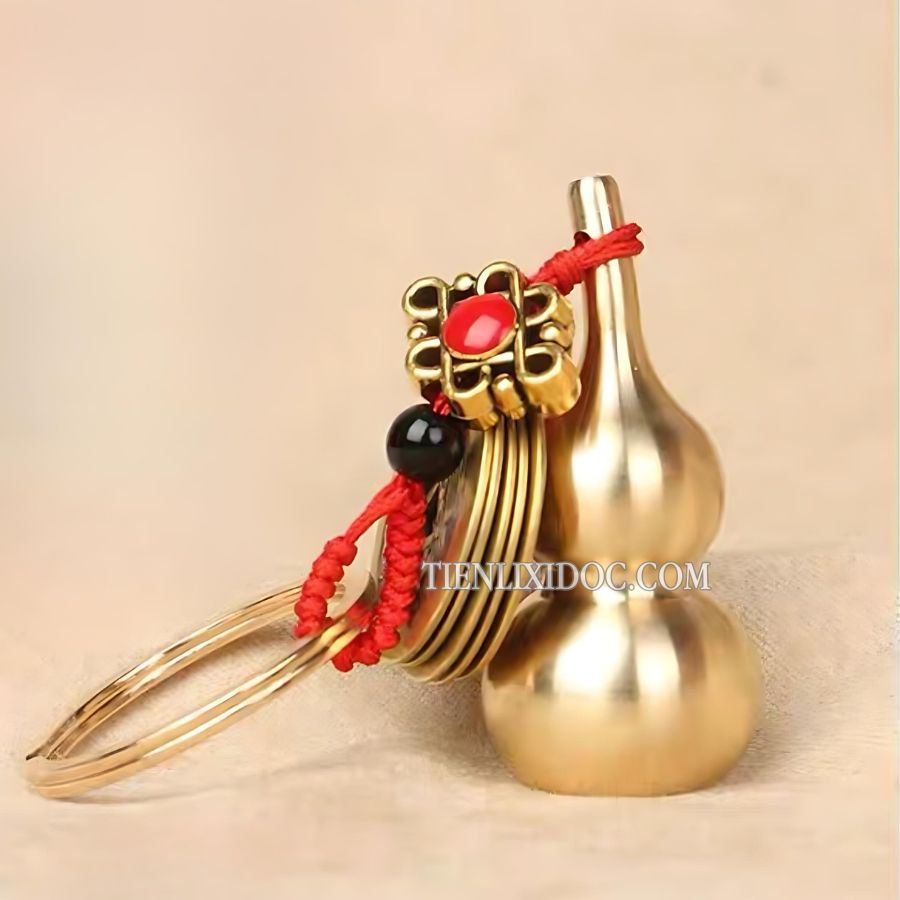 Móc khóa Hồ Lô 5 Đồng Xu bằng đồng kết hợp xu Ngũ Đế là vật phẩm phong thủy độc đáo với: